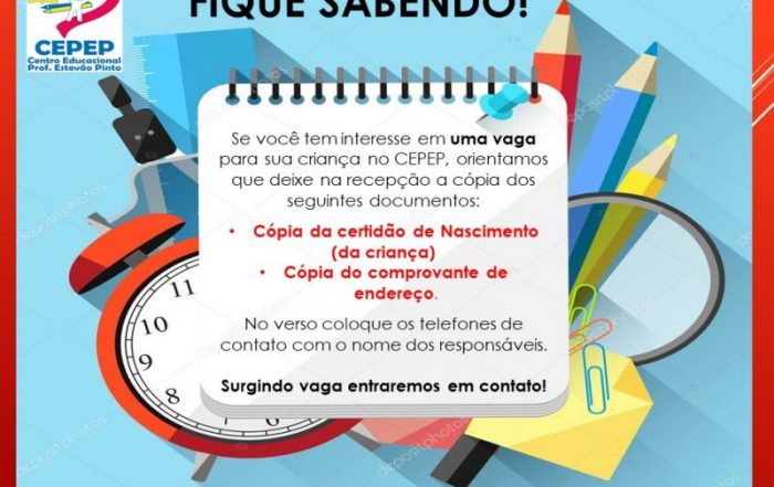 Foi autorizado a livre demanda para todas as faixas etárias. As famílias poderão procurar diretamente a Instituição de interesse. Reforçamos que o CEPEP atende crianças de 1 a 5 anos. INFORMAÇÃO VALIDA PARA ESTE ANO [...]